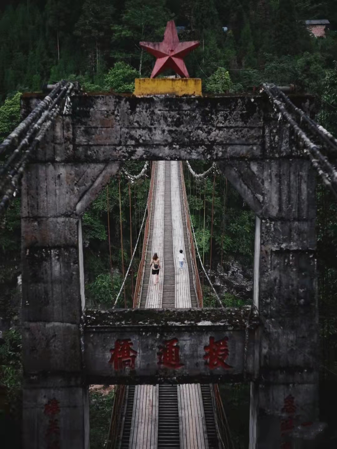 援通桥是位于四川成都市邛崃县南宝乡,芦溪上的一座铁索桥,建造在深93米的悬崖上,长100米左右,宽3米左右,只能供人行走。援通桥建造材料为钢索,混凝土,木料。在没有建造之前,河对岸(甘山子)的村民要过河是很辛苦的事。所以很多人踊跃的捐款,才建成了这座桥。