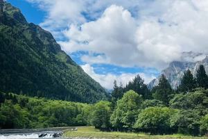 春夏季的四姑娘山可以说是最美的时候,不仅绿草如茵,到处都是清凉的颜色,还有山花盛开,伴随莺鸟啼鸣,藏在在深山之中,双桥沟海可以进行夏日最清爽刺激的活动——漂流。