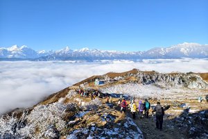 全天为了欣赏到华尖山的日出云海美景,今天需要大家早起哦!早上6:30起床,徒步前往【华尖山顶观景台】(约半小时路程),东观日出云海,西照贡嘎金山,霞光万顷,佛光彩绸,四面云海,四面环山,景色迷人,此时此刻尽情享受华尖山的美丽风景,继续消耗相机的内存。喜欢拍照摄影的朋友请提前为设备充好电,社交平台刷起来,说不定下个网红就是你哦。随后在山顶合影留念,后返回营地享用早餐。8:50左右集合徒步下山,回到【大草坪】继续换乘当地中转车下山至【冷碛镇】。中午我们将在【冷碛镇】吃午饭。餐后原路返回成都,预计下午17:00左右抵达成都,结束愉快的旅程。