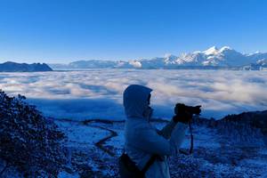 雪山、佛光、彩虹、霞光应有尽有。白色的云雾,弥漫在群山之间,日出后,即可看见远山金黄,美好的早晨便从美好的场景中开始了。