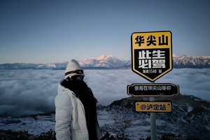 天气晴朗的时候,在华尖山上可以看到蓝天白云,天空澄碧如洗;大雾的清晨,朦胧迷离;雪峰高出浮云之上,人立峰顶,如踏浮云,追光逐日,遨游山谷。