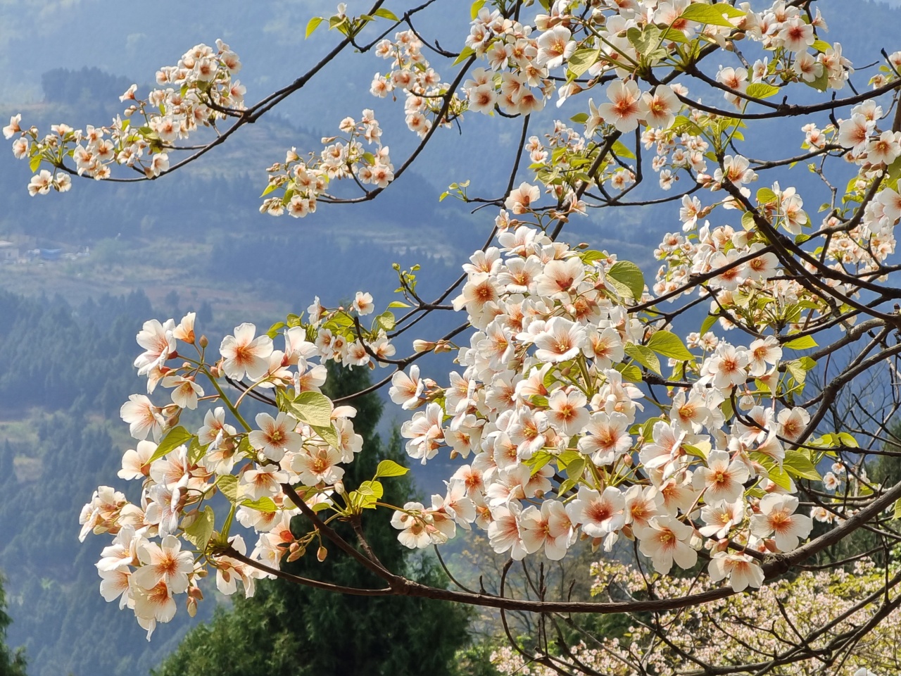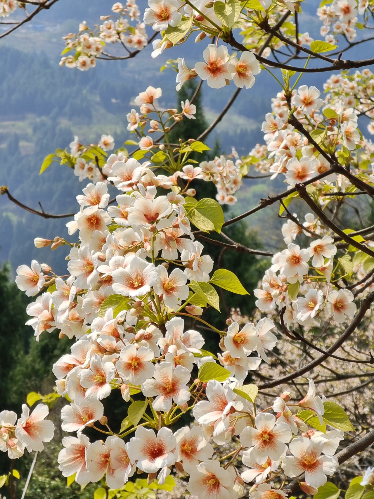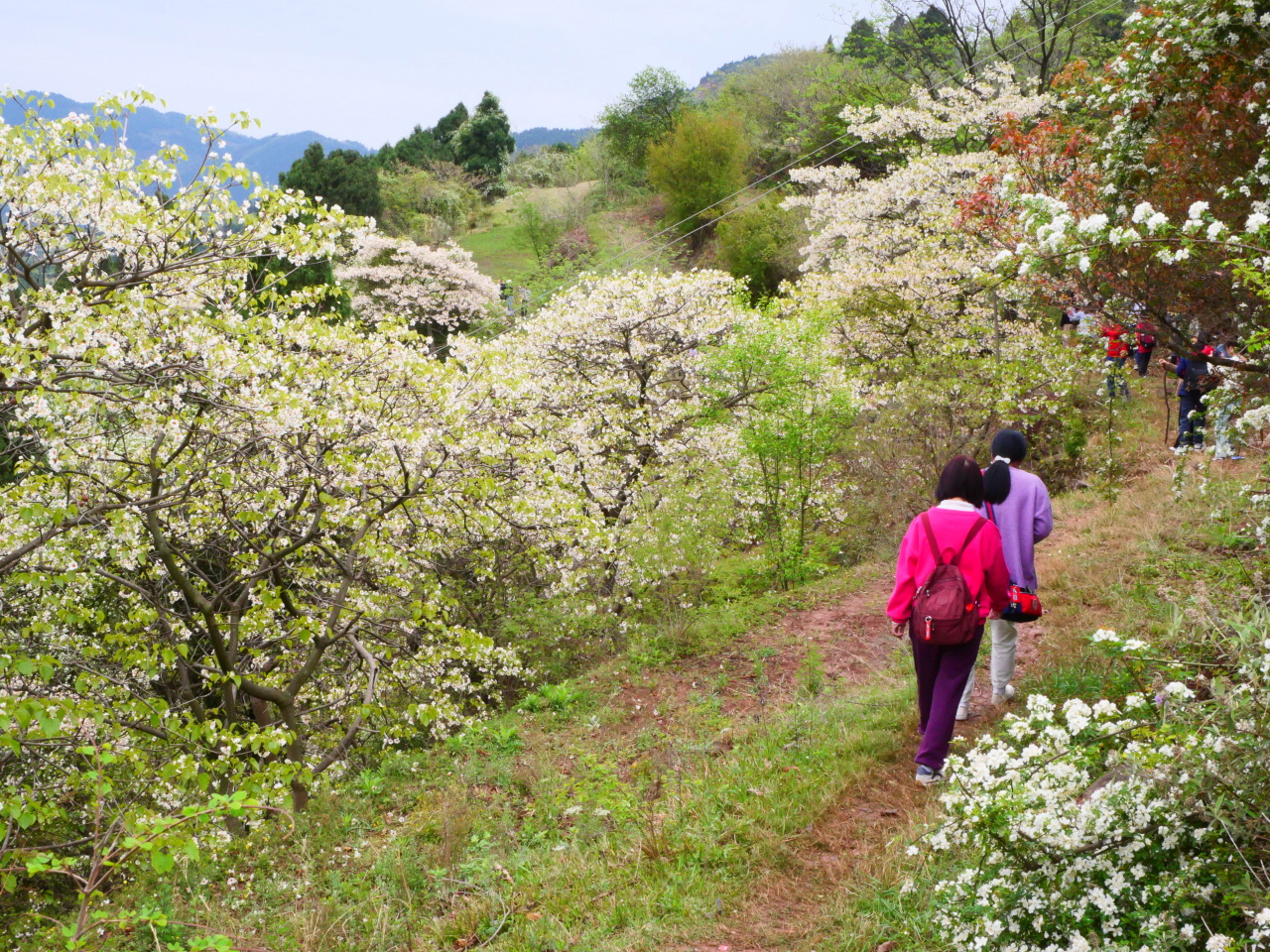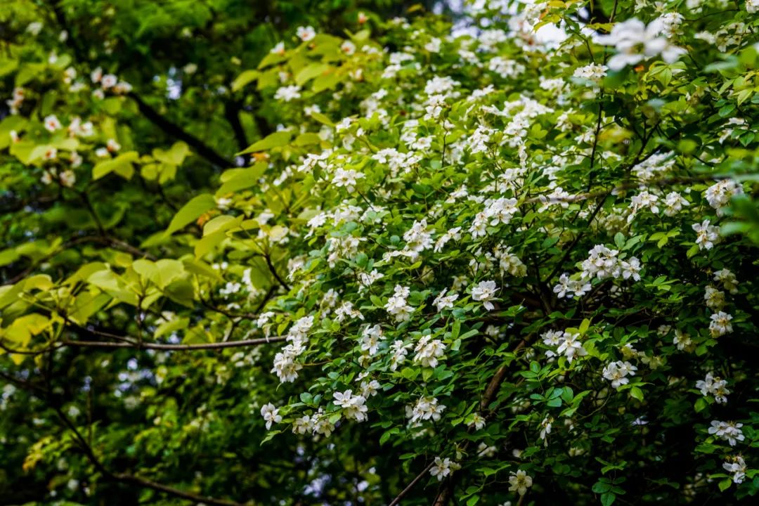 此时的山上,不仅仅有盛开的桐子花,山林间还夹杂着白色或粉色的野蔷薇,当地人说它们叫三月花也是很通俗易懂了。