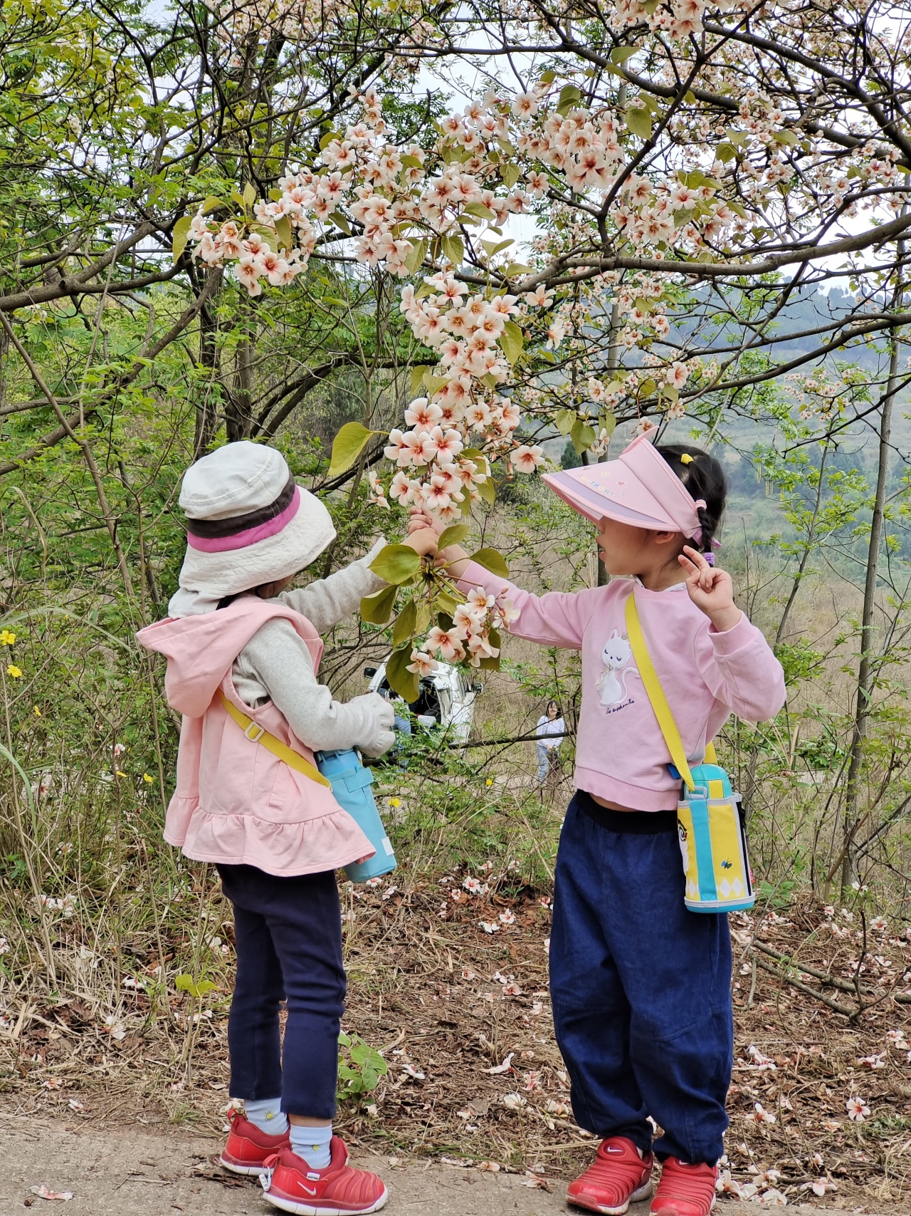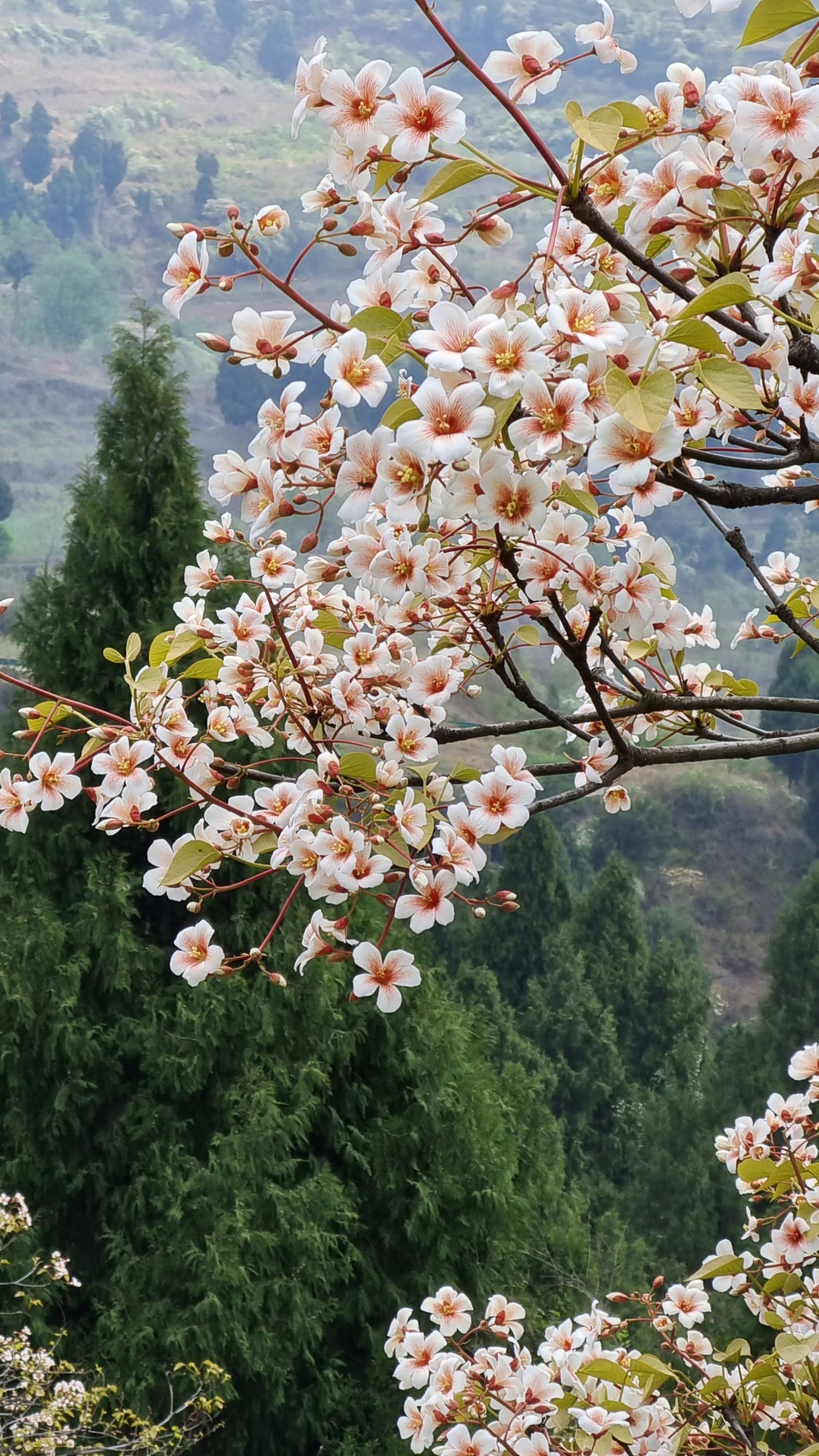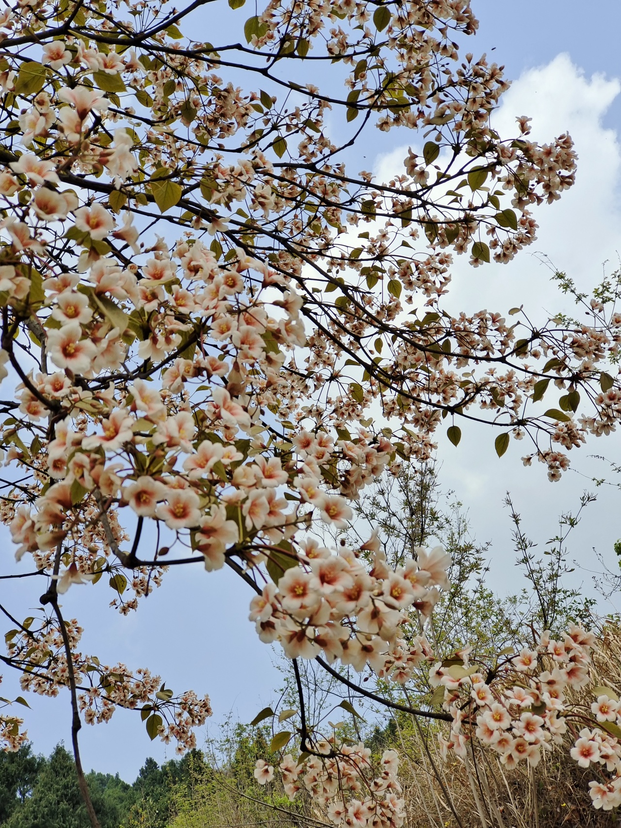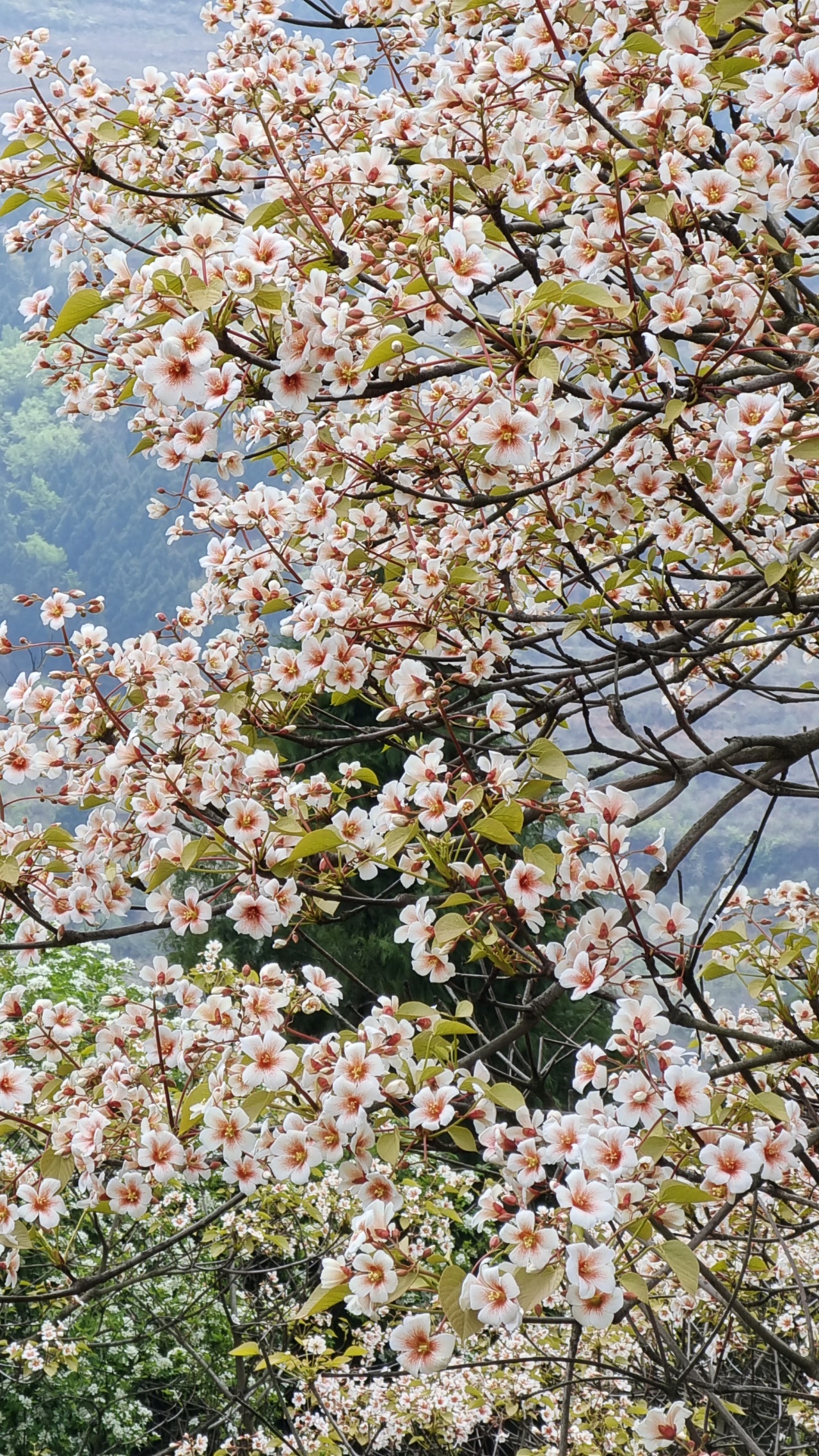 此时的山上,不仅仅有盛开的桐子花,山林间还夹杂着白色或粉色的野蔷薇,当地人说它们叫三月花也是很通俗易懂了。