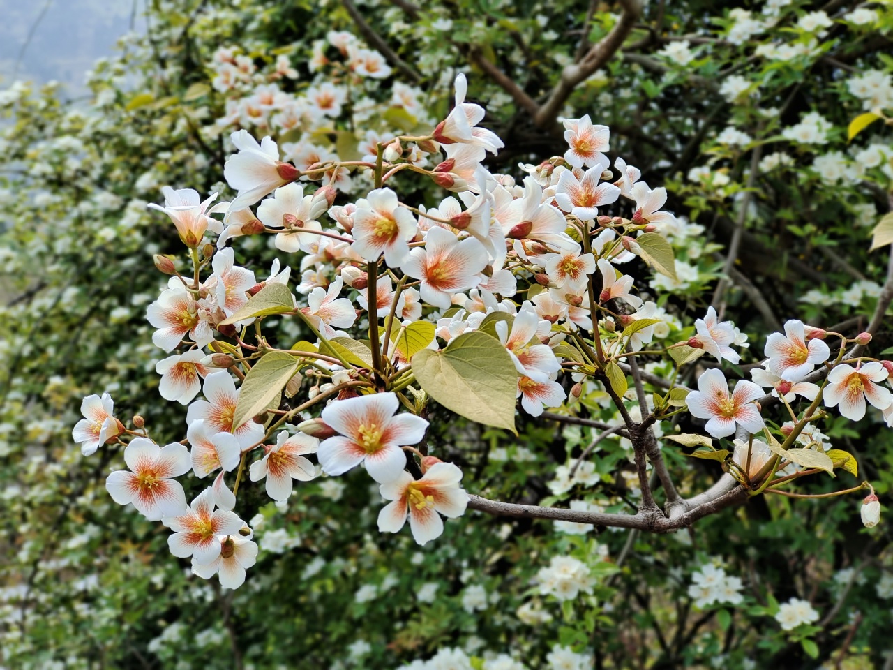 桐子花开每年三月末四月初,在沱江第一峡,白里透红的桐子花犹如在一夜间苏醒。开满枝头的花朵,花团锦簇、清新素雅、迷人高贵。