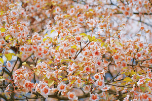 桐子花清高素雅,总是在料峭春寒之后悄然开放,白色的花瓣里藏着一颗,小小的,粉红的心。微风拂过,大片大片的花瓣便随风飘落,似漫步在花语的梦境中。
