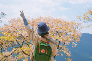 初露尖头,绿意盎然的山林中,它一点不娇气,朴实无华如一个乡间小姑娘;迎着朝霞,送走暮光,在岁月低语中,绽放、飘落,为乡亲们铺出一条落英缤纷的山路。