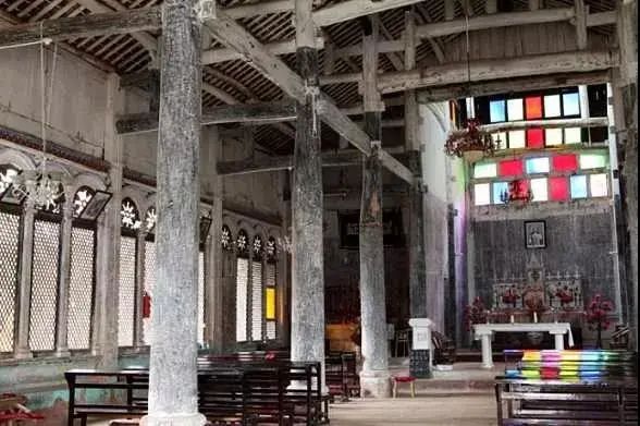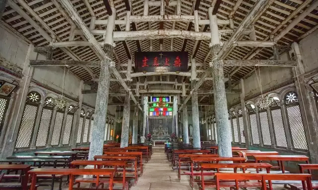 天主教堂,花海掩映之下,有一座始建于清乾隆三十七年(1772)的法式天主教堂,距今已有200多年的历史。岁月,在这座教堂留下了太多痕迹,墙上斑驳的印记,记录着那些消失已久的秘密。