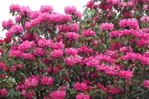 这一朵朵鲜艳的杜鹃花簇拥着,
