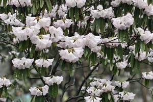 一到春天,无忧谷沉睡了一个冬季的植物就开始苏醒了,高山杜鹃竞相绽放,还有一树一树的烂漫山花,它们间插在翠绿的山间,云雾缭绕,远处的雪山时隐时现,如诗如画,似仙境般美妙。